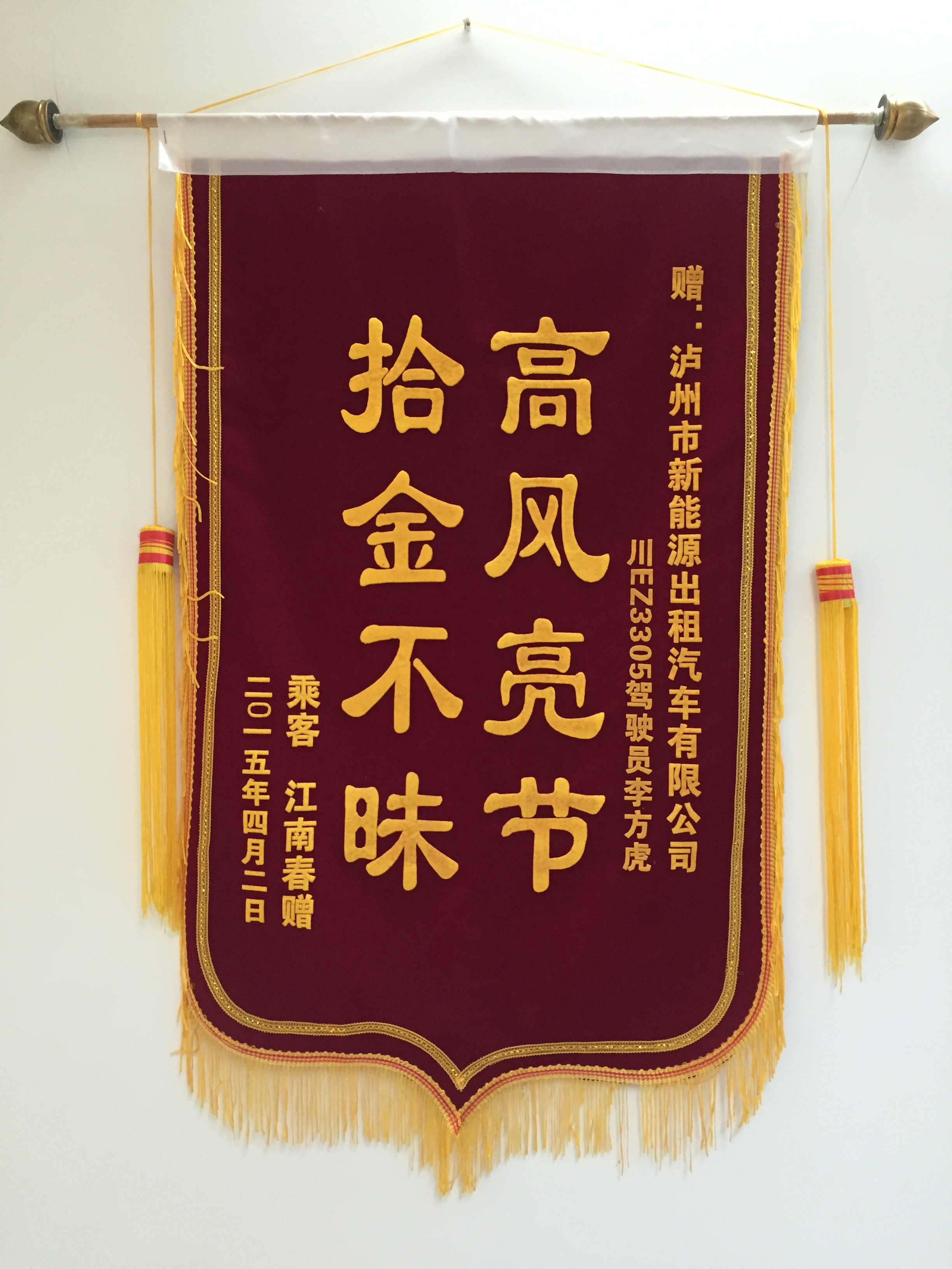 川EZ9202駕駛員羅強(qiáng)于5月7日撿到乘客王燕重要資料,及時(shí)交還乘客。乘客送來(lái)錦旗感謝